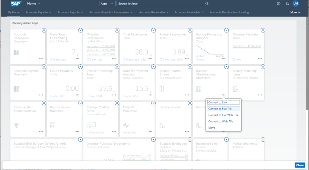 One of the key improvements in Fiori 3.0 is its streamlined, intuitive interface. The platform’s central entry point, the Launchpad, has been further refined to provide an even more cohesive and user-friendly experience, regardless of whether the end user’s business process involves a native Fiori app or a traditional SAP GUI transaction. Next to the new themes it’s also easier to arrange the home screen, show tiles as small links or flat tiles and add sections.