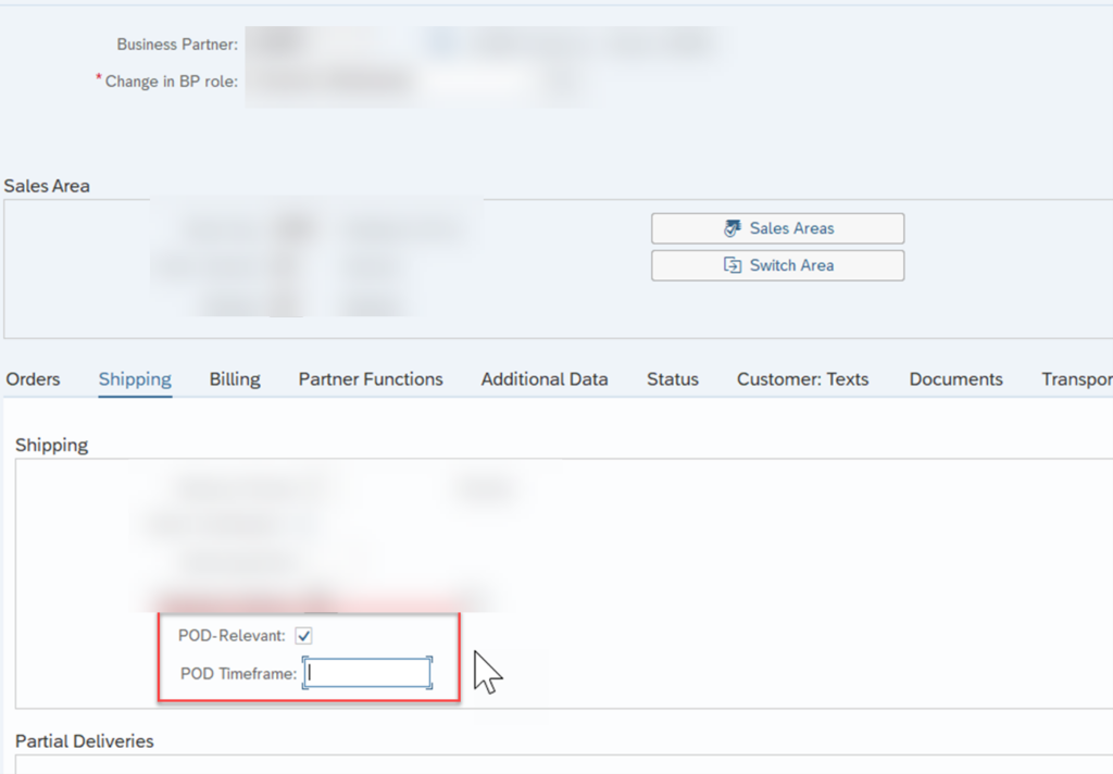 - Switch on PoD relevancy on BP master data (shipping tab)