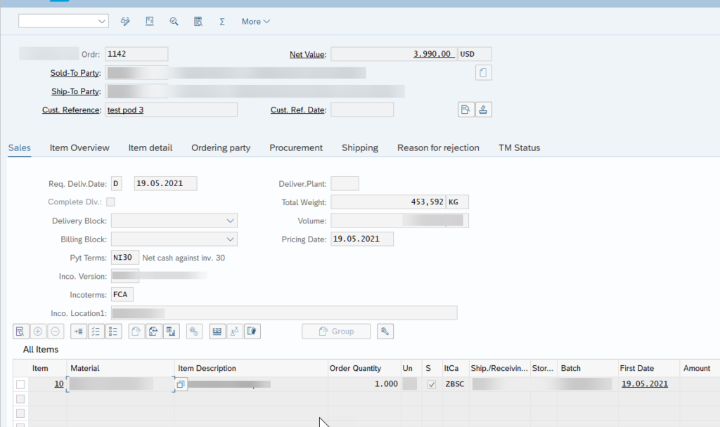 – Item Category Determination:** Based on the sales document type, determine the relevant item category (with PoD activated).